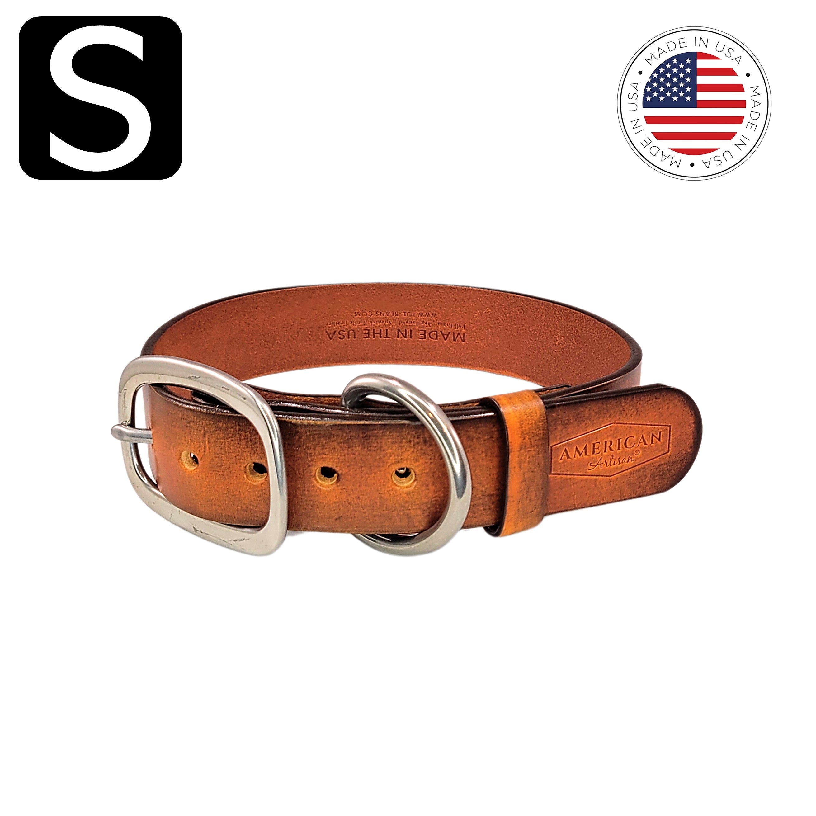 ✔️ American Artisan® dog collars and leashes are made using only Spanish bridle full grain leather.