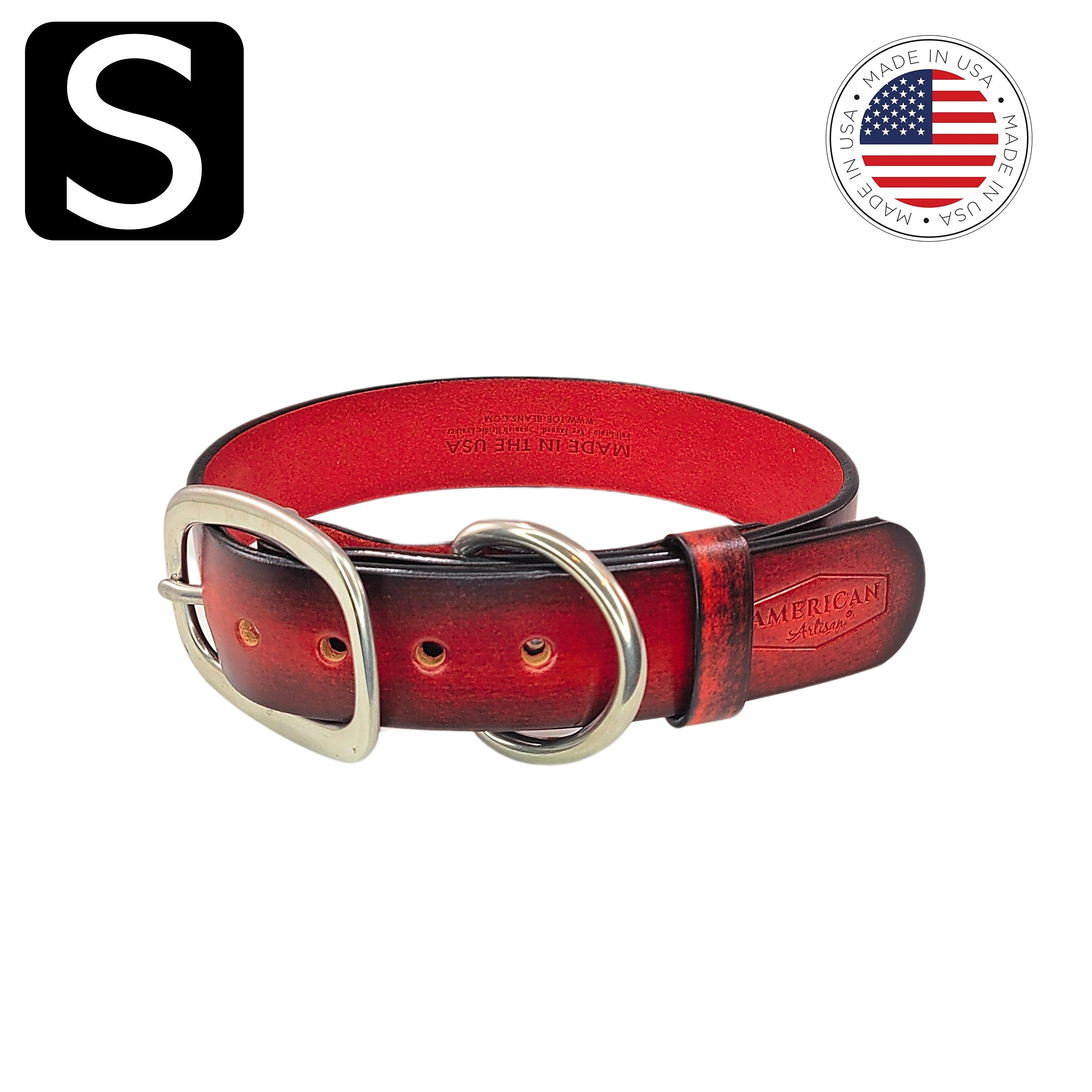 In Rustic Red, American Artisan® collars are also available in blue and brown. There's a size for everyone!